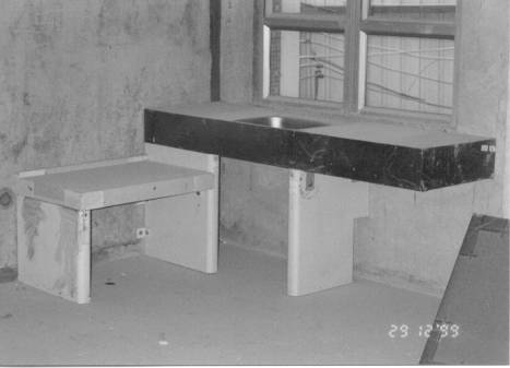 stainless steel sink was cast in lightweight concrete bed, 75mm