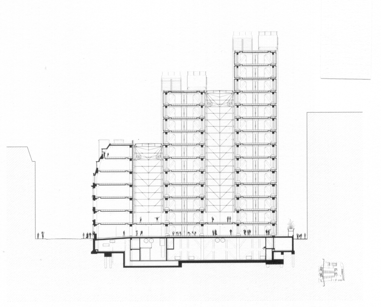 for bracing walls in the cores. The lift cores are supported on a slender