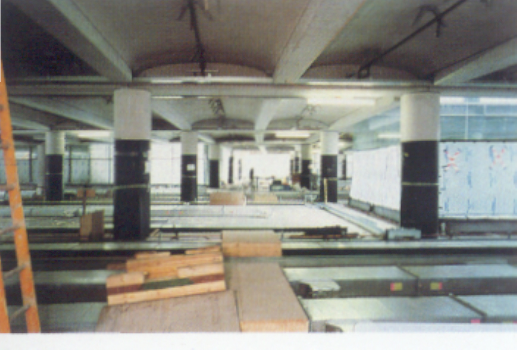 a series of vaults spanning between concrete ribs at 3m centers. The ribs, in